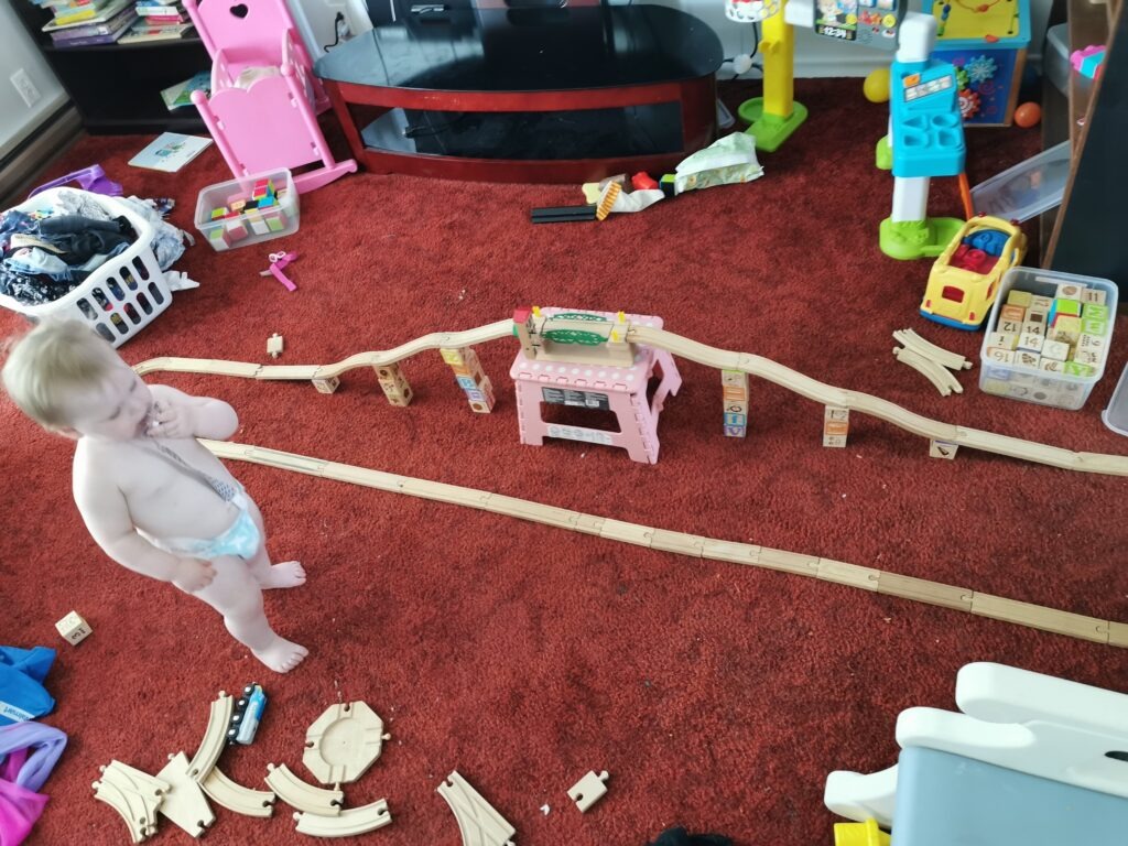 Miss Azaylia is a supreme architect and civil engeiner. Here you can see her in her sun set role at the train station where she was forman on the new track. She and Daddy came up with many crazy tracks together